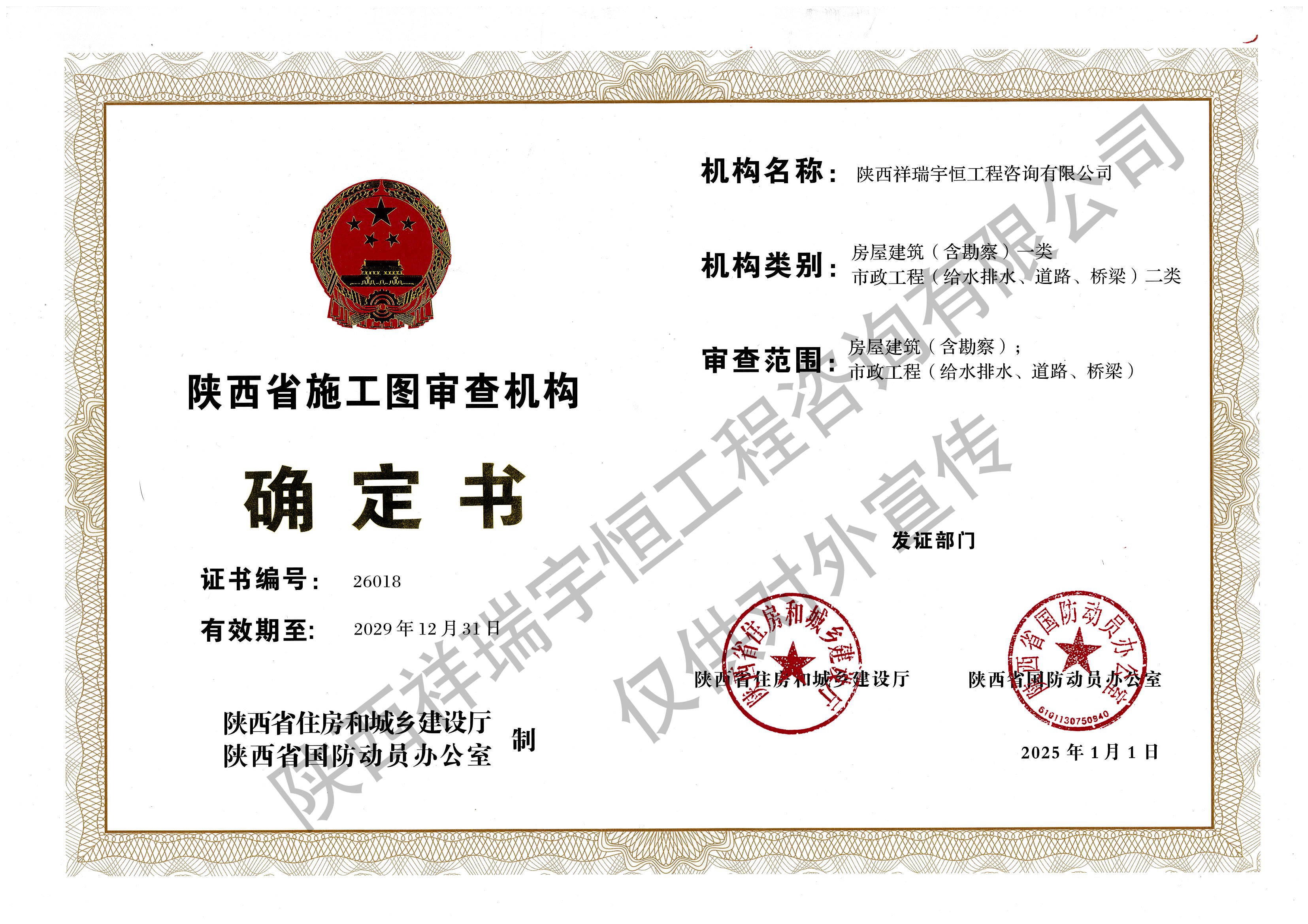 • 熱烈祝賀陜西祥瑞宇恒工程咨詢有限公司圖審資..